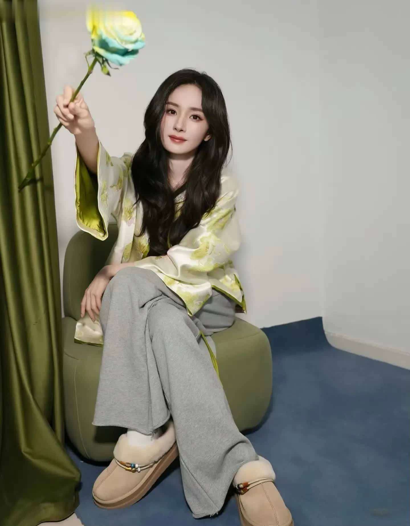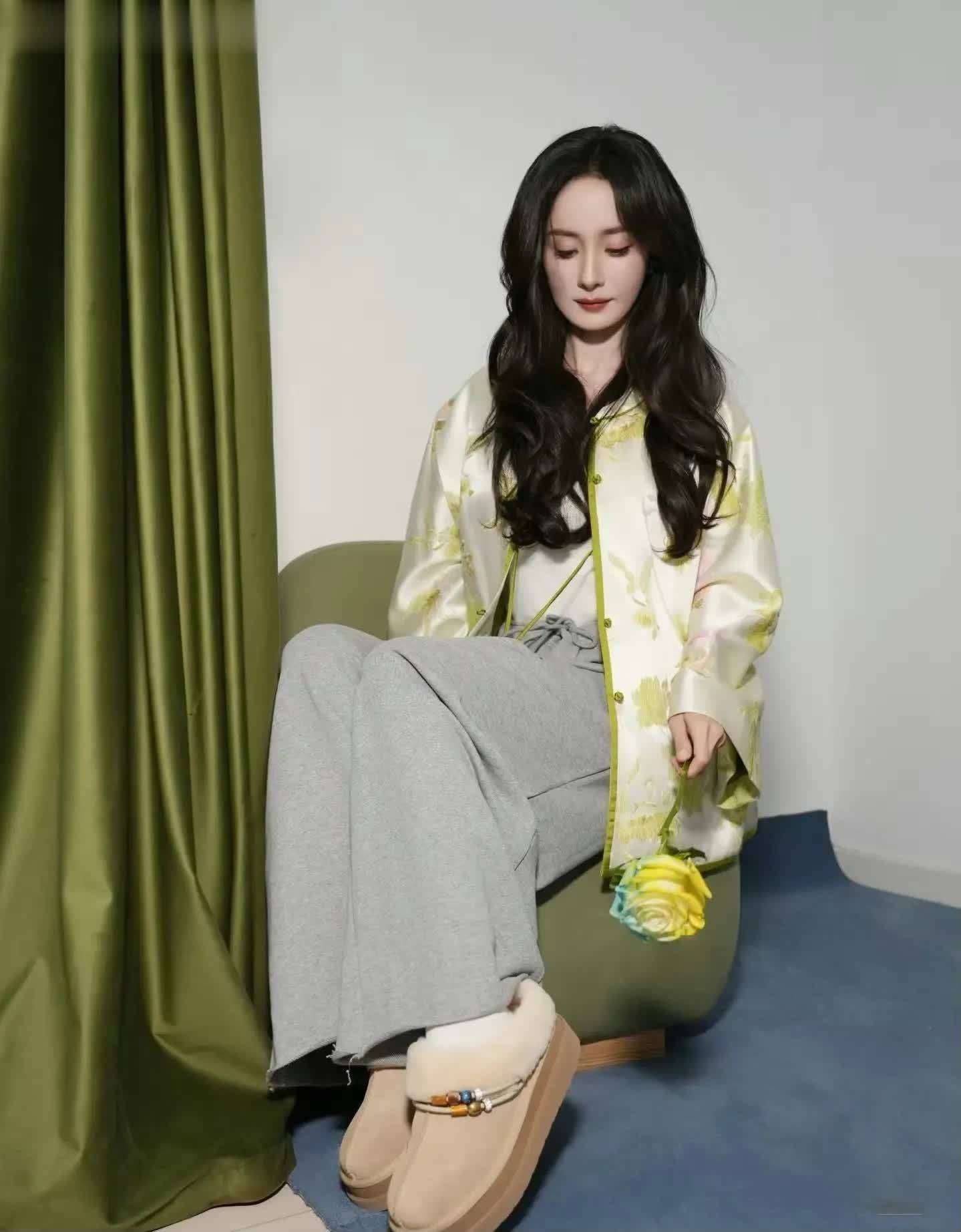 杨幂对新中式的喜爱,真的是深入骨髓。她在冬季里将新中式服饰作为内搭,不仅保持了她一贯的优雅与时尚感,还巧妙地将这种传统与现代相结合的穿搭,展现得淋漓尽致。随着寒冷的季节来临,我们衣橱里那双熟悉的雪地靴也该再次登场了!不得不说,杨幂的新中式+毛绒勃肯鞋的搭配,无疑是冬季时尚的强力炸弹。它不仅拥有极高的出镜率,更是一种轻松而又温暖、青春洋溢的时尚表达。