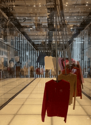 最终在 12 月 15 日展期结束当天,把这组吊衣展陈全部撤下,只保留下方展台正常售卖商品。