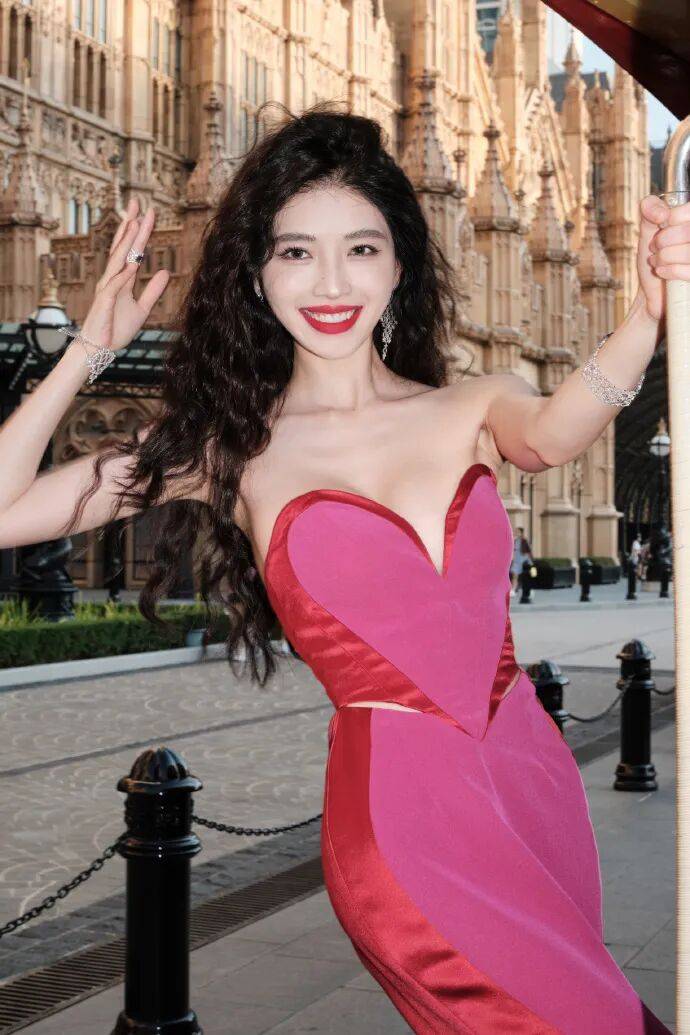 复古场景的细腻铺陈,为这组写真增添了电影质感。她时而侧身而立,红裙开叉处露出的线条利落又优雅;时而仰头浅笑,发丝与裙摆的垂坠感形成和谐的韵律。在这个被红色包裹的世界里,她没有被浓烈的色彩淹没,反而以清冷的气质形成对冲,让“红”成为衬托个性的底色,也让观众看到她驾驭不同风格的可能性。这种对色彩与情绪的精准把控,正是她作为演员的核心能力之一。