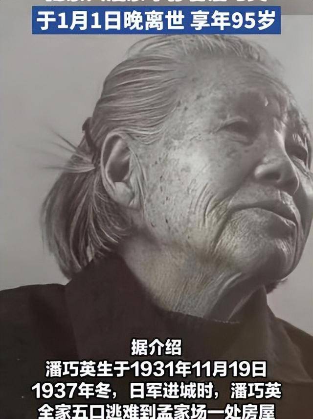 南京大屠杀幸存者潘巧英,享年95岁。随着她的离世,登记在册的南京大屠杀在世幸存者仅剩23位。