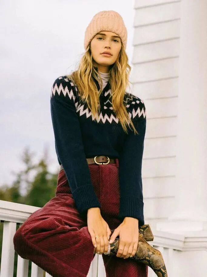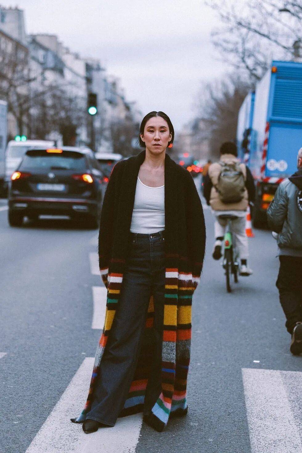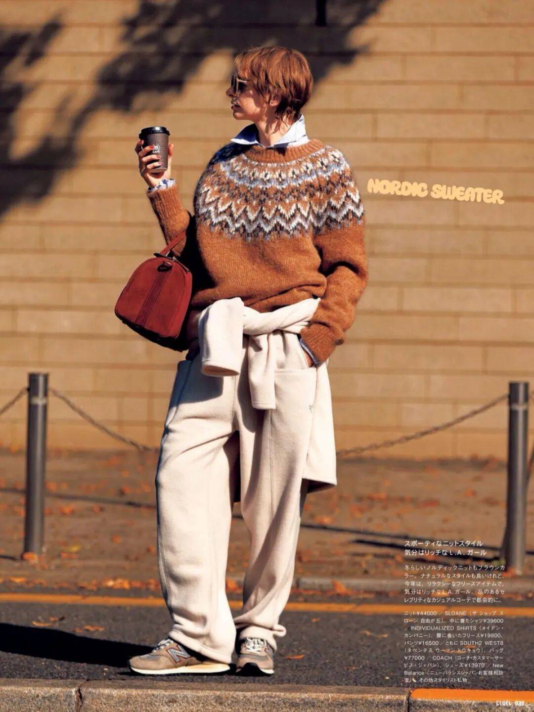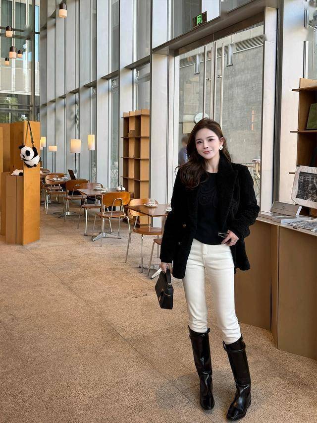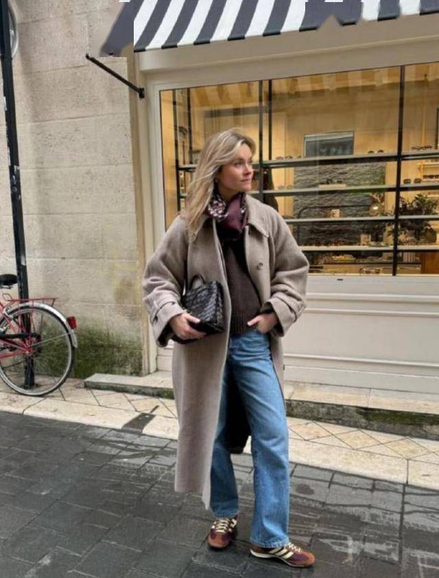 3. 材质混搭出层次:牛仔+羊毛、麂皮+针织,软硬结合更显贵。