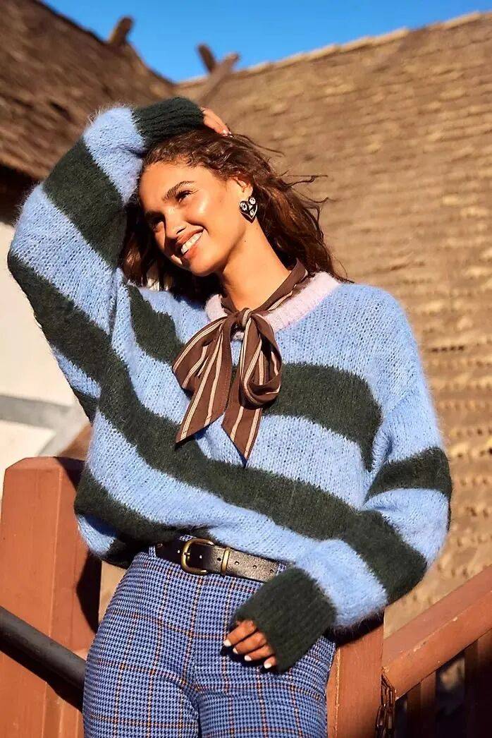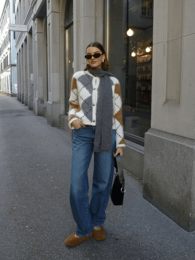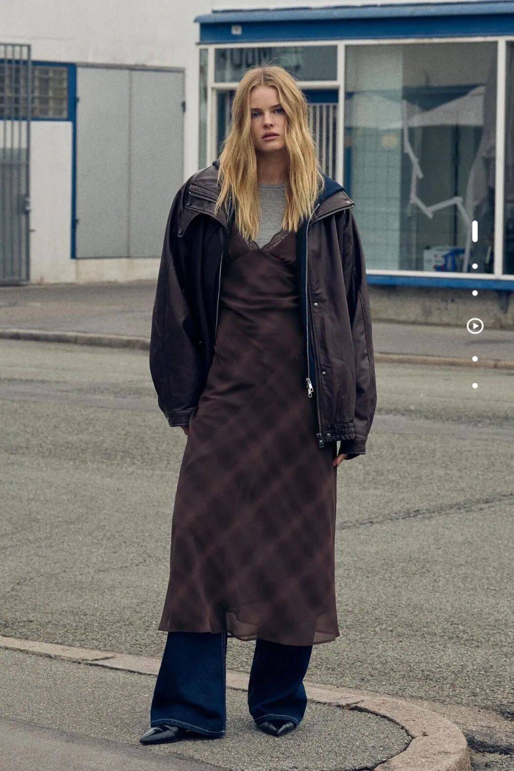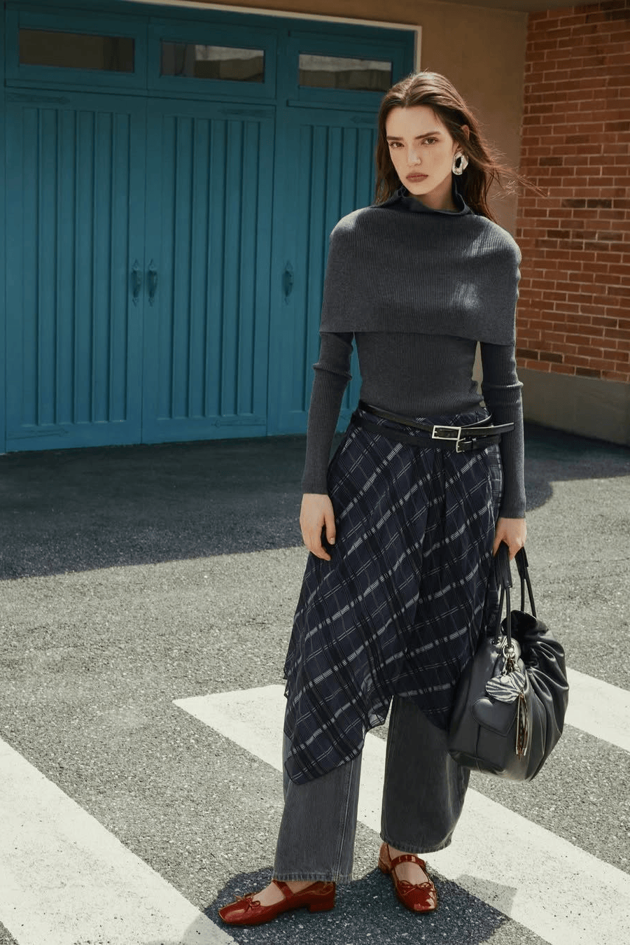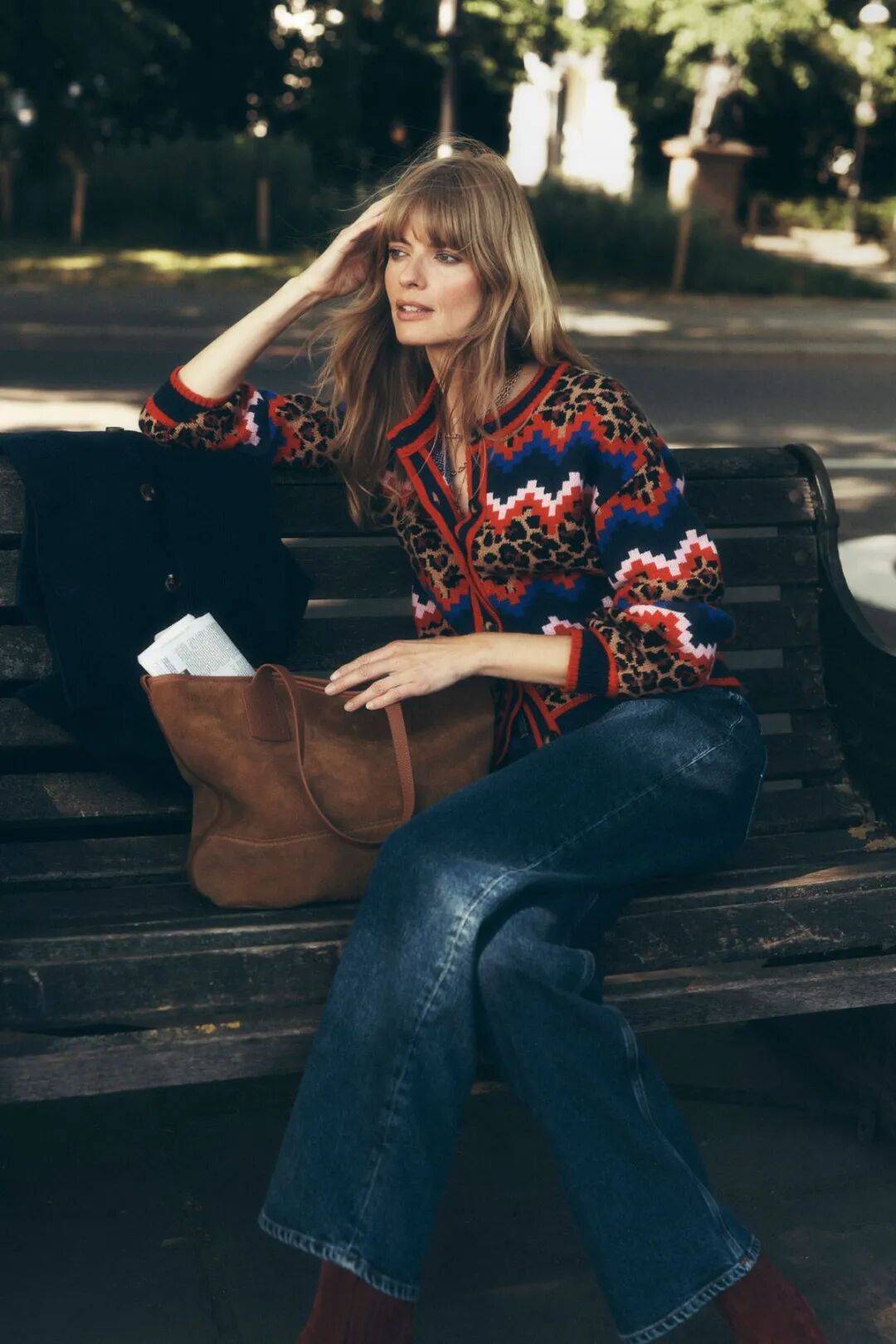 3. 材质混搭出层次:牛仔+羊毛、麂皮+针织,软硬结合更显贵。