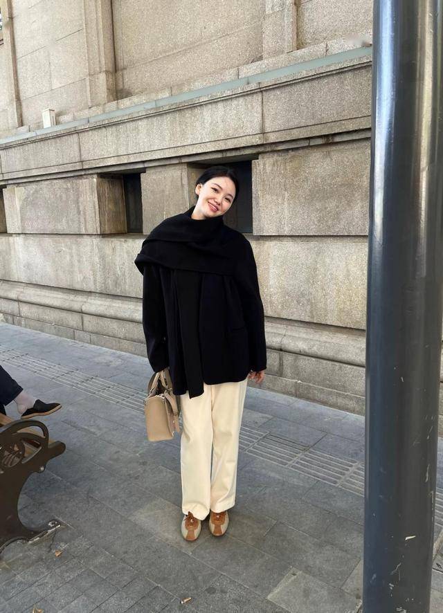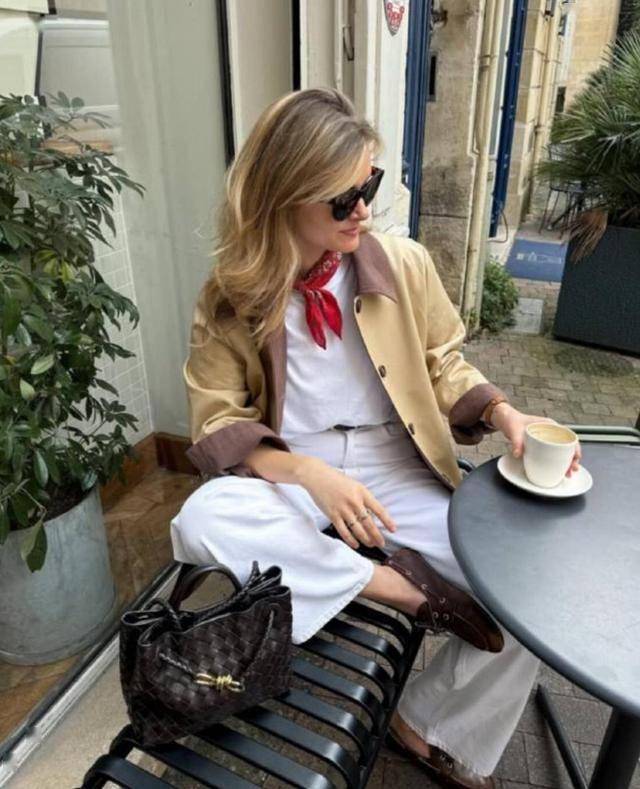 2. 配色“主次分明”:全身不超过3个颜色,用小面积亮色(如红丝巾、黄包包)点缀。