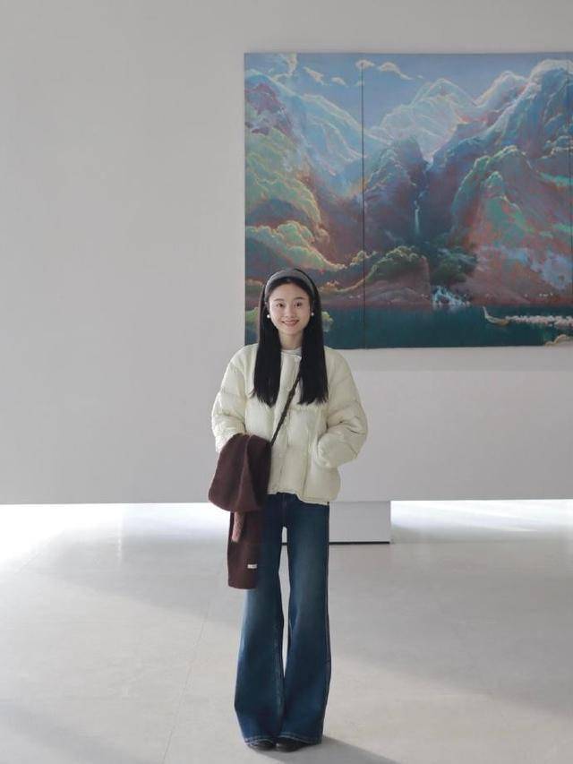 牛仔喇叭裤:配短款羽绒服+围巾,复古又显高,小个子轻松驾驭。