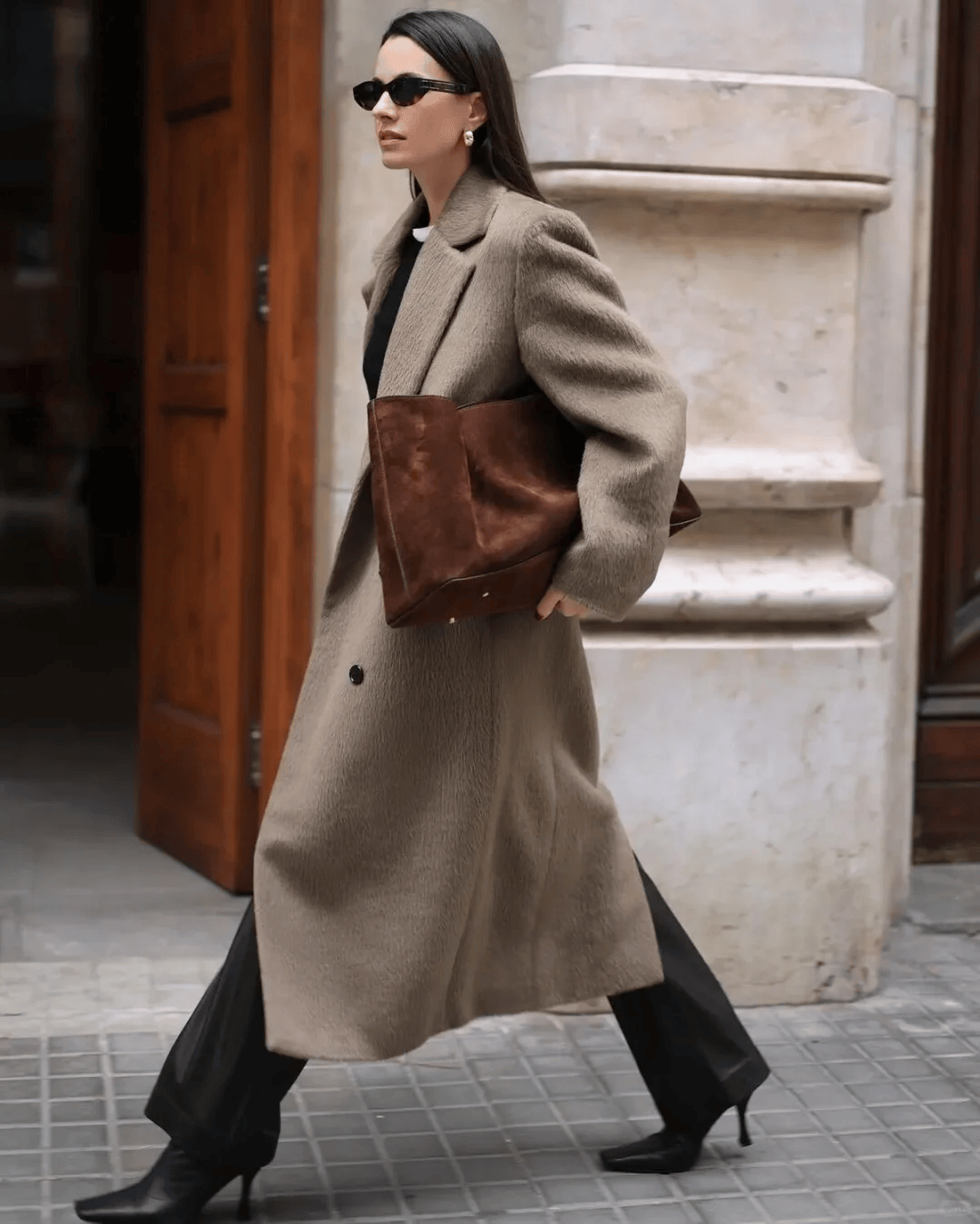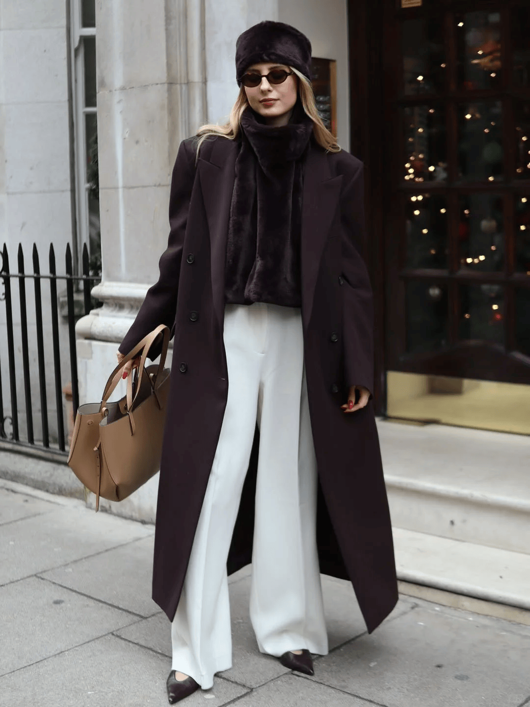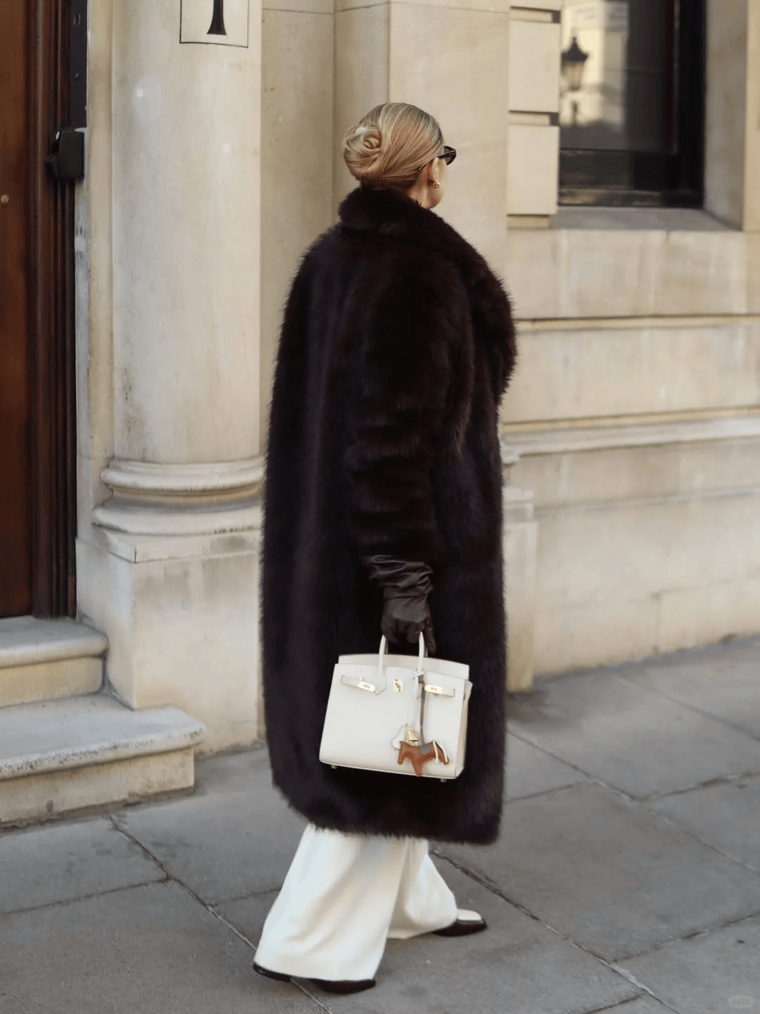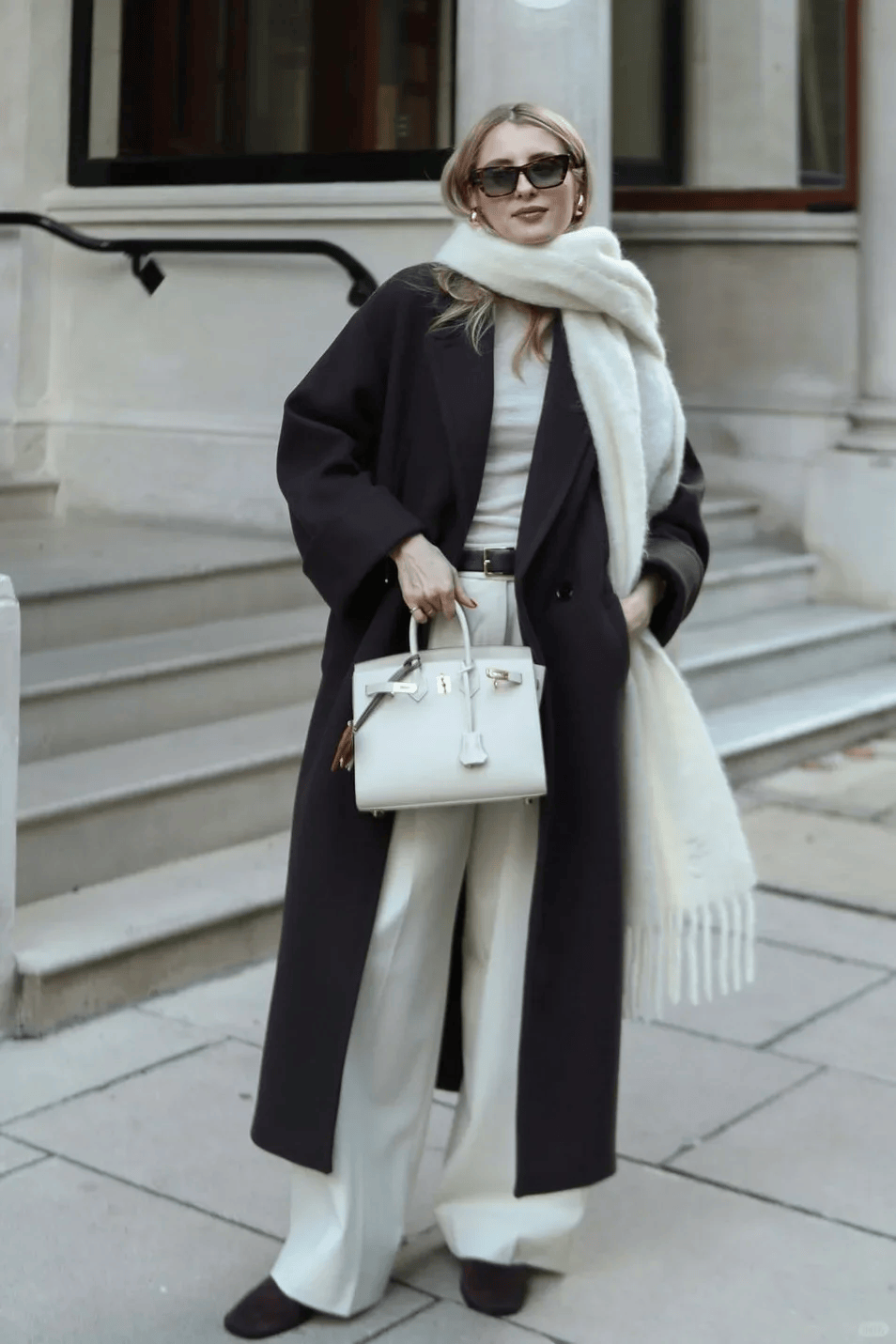 羊绒大衣+毛绒皮草:高个姐妹的“气场王炸”,拎同色系包包,贵气又和谐。