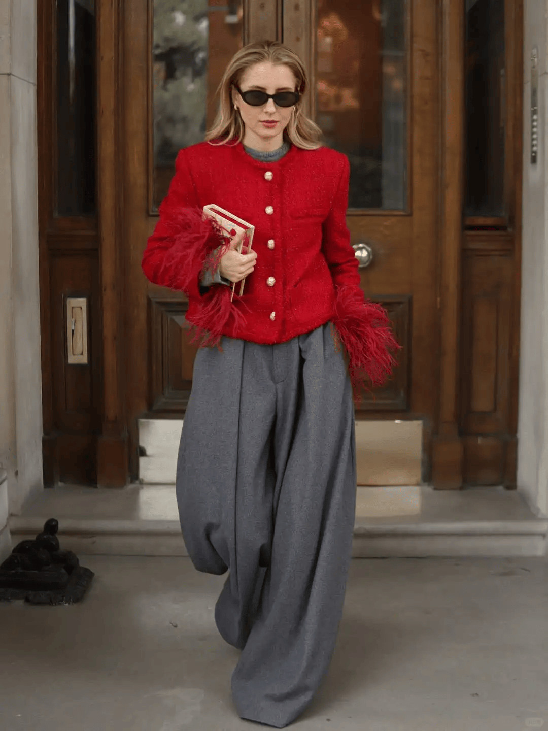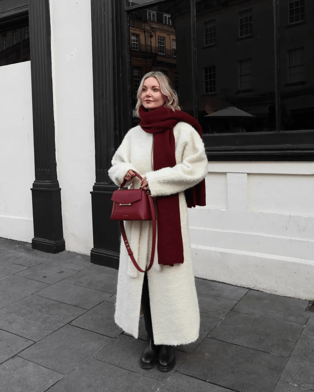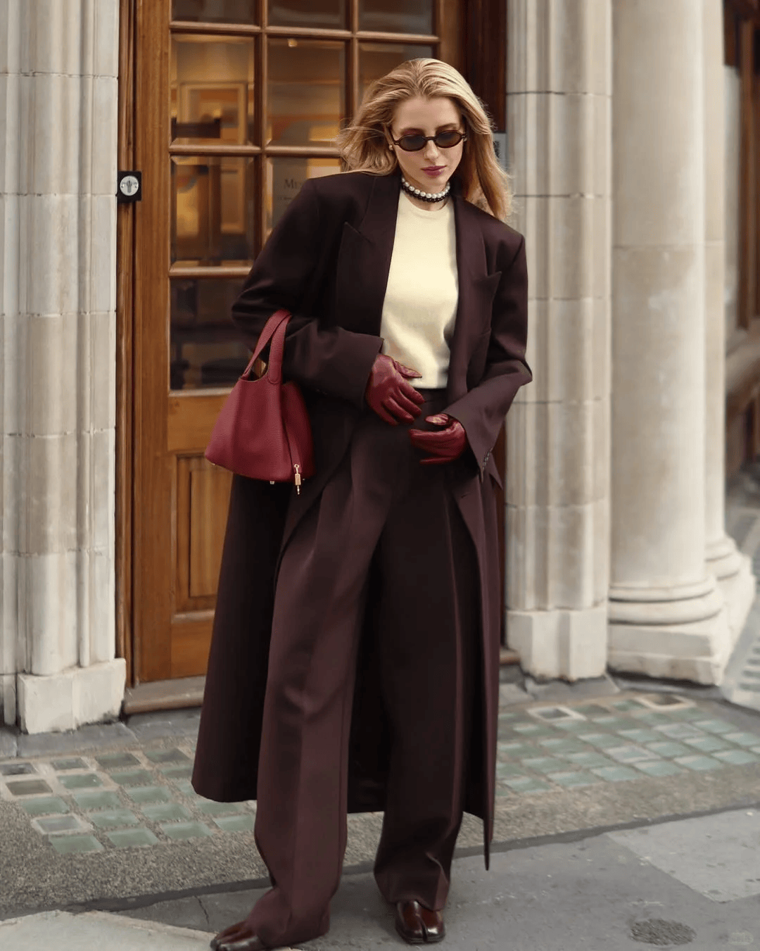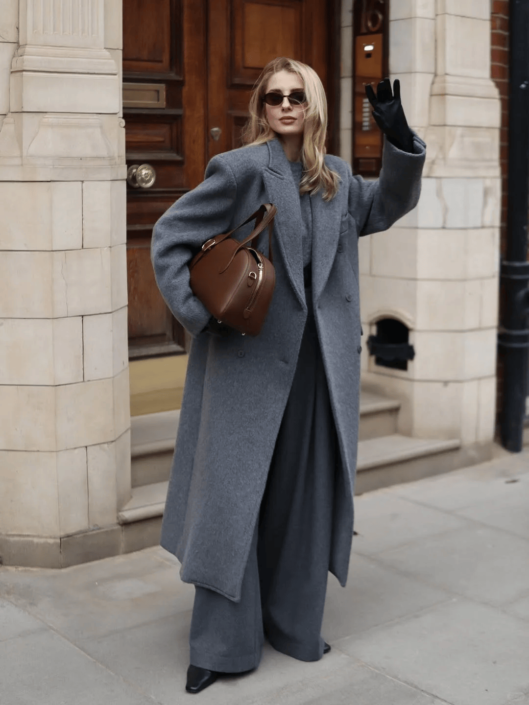 羊绒大衣+毛绒皮草:高个姐妹的“气场王炸”,拎同色系包包,贵气又和谐。