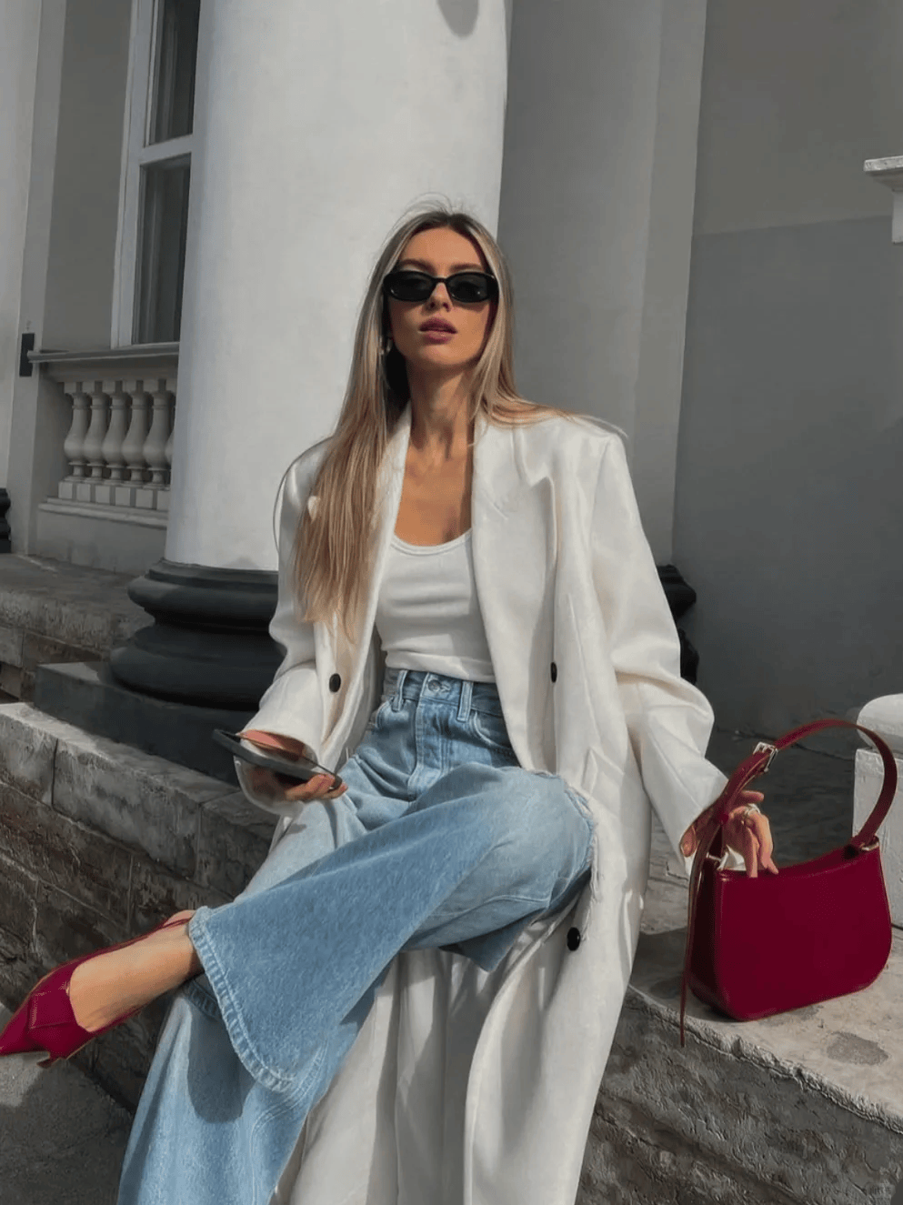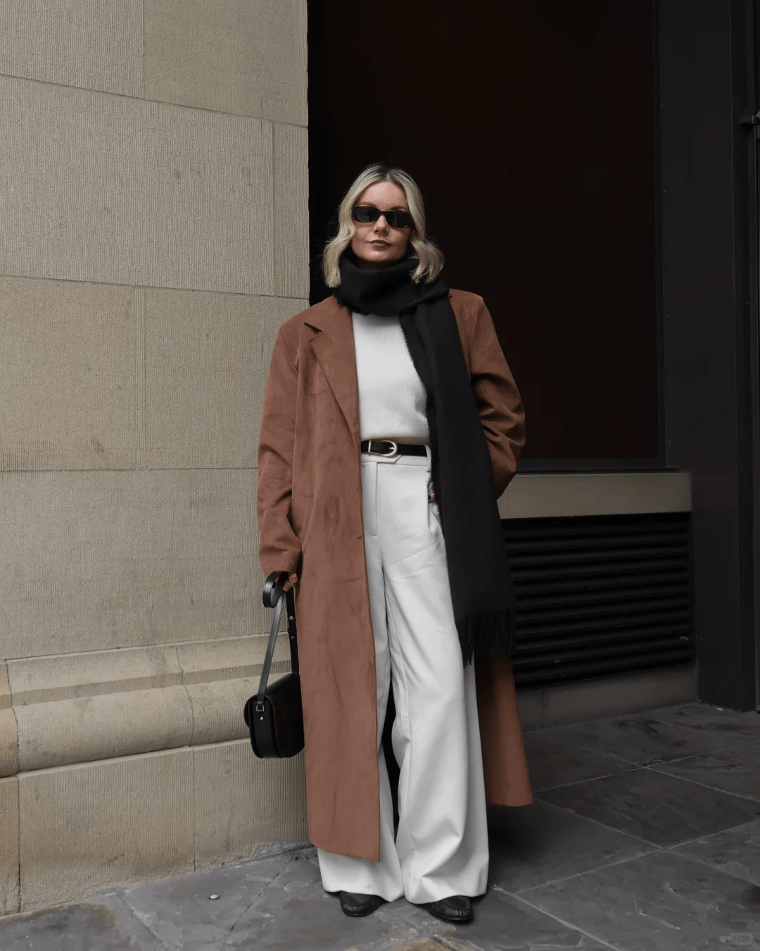 文案灵感:发朋友圈时可以写:“原来冬日穿搭可以这么‘瘦’!垂坠大衣+简约内搭,轻松穿出高级感!”