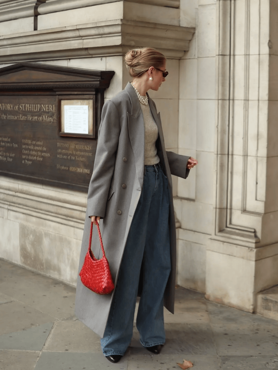 自在松弛:暖调毛衣+牛仔阔腿裤,硬挺与随性的碰撞。