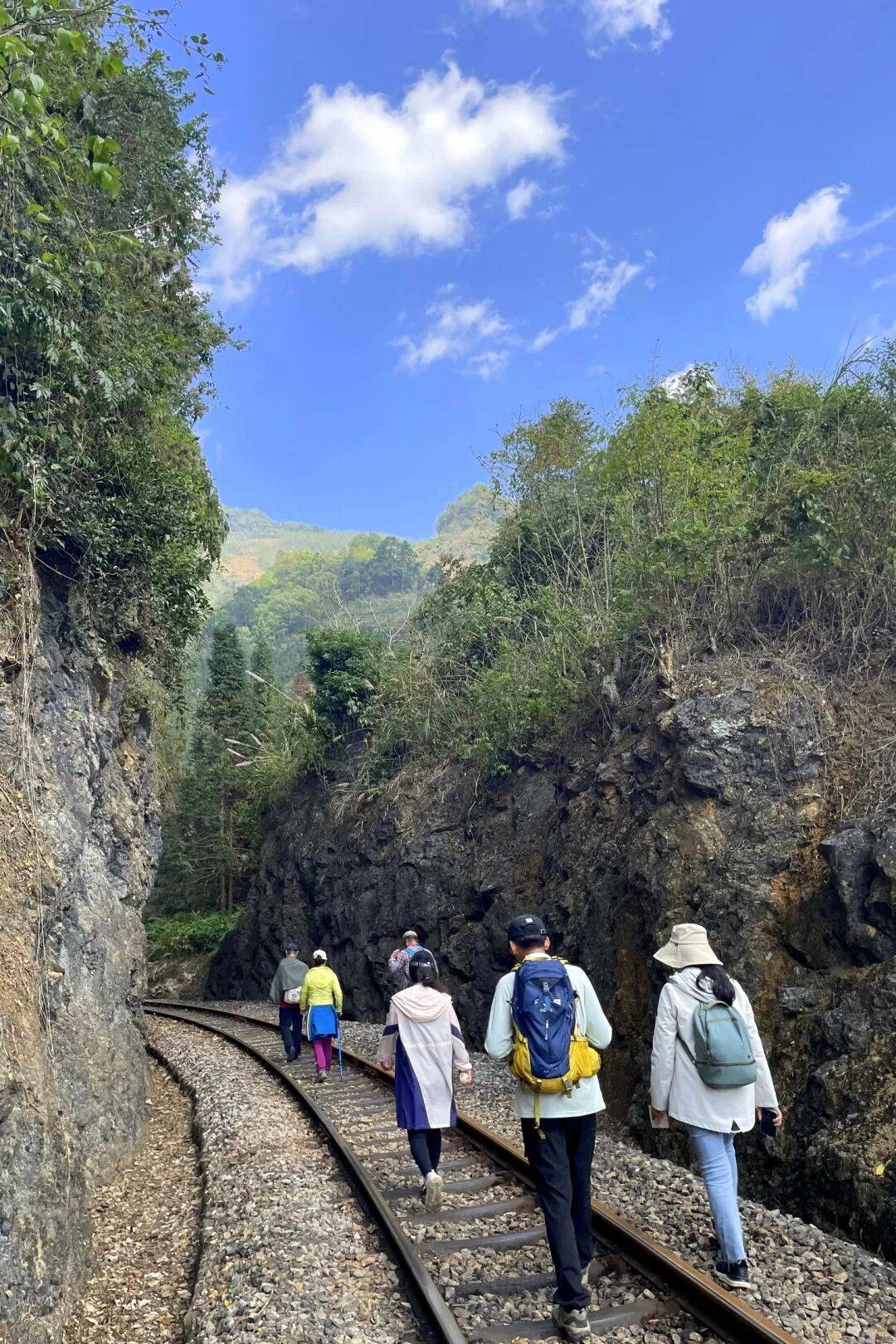 最经典的滇越铁路111.883-120.083(人字桥-倮姑站)段徒步线路,将人字桥、老虎嘴、倮姑站等重要建筑、景观、节点,以及众多的桥梁、隧道贯穿起来,再加上一路上险峻奇绝的山野风景,让人流连忘返。