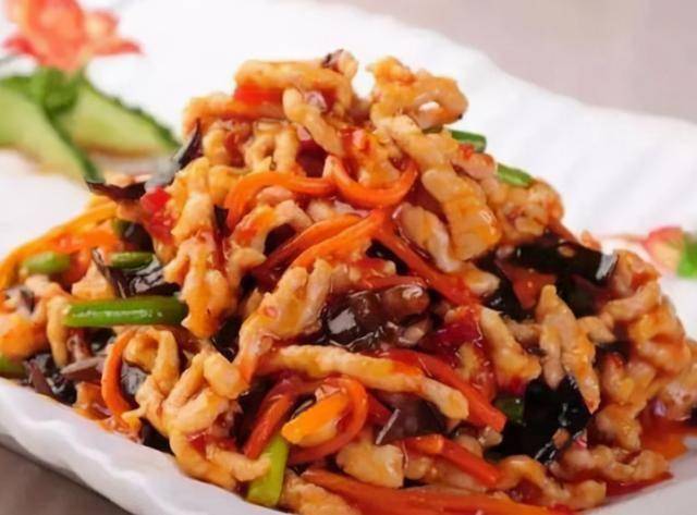 食材:猪里脊肉300克,绿尖椒1根,胡萝卜1/4根,冬笋1/2根,黑木耳6朵,腌肉调料(生抽5ml,料酒5ml,水淀粉20ml),鱼香汁(生抽5ml,醋15ml,白糖45克,盐1克,水淀粉20ml),色拉油80ml,葱,姜,蒜末适量,四川泡辣椒4-5根