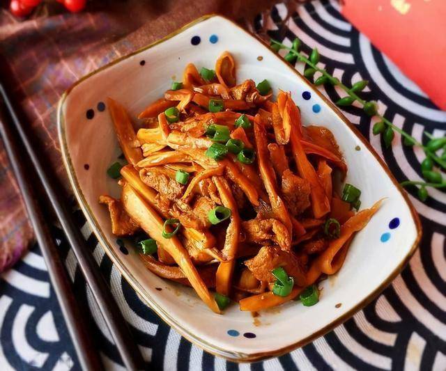 2.里脊肉切片,下锅炒熟,加一勺酱油,炒好备用。