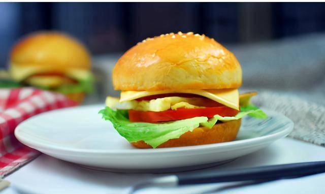 10.再把另一片小餐包盖上去,汉堡包就完成了。