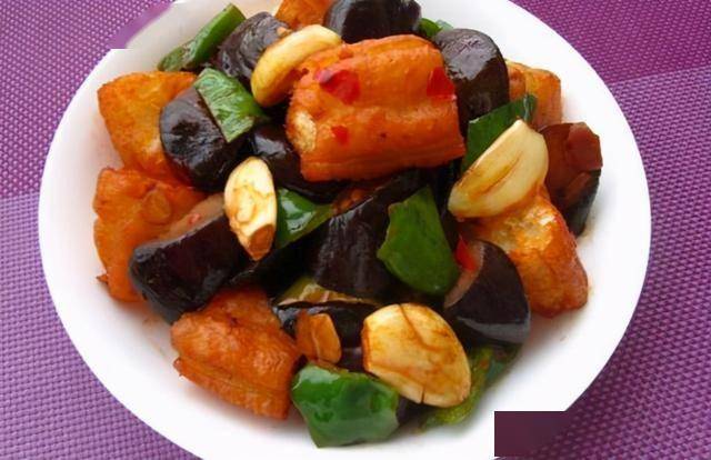 原料:茄子,油条, 辣椒, 豆瓣酱, 蒜, 胡椒 ,盐 ,油