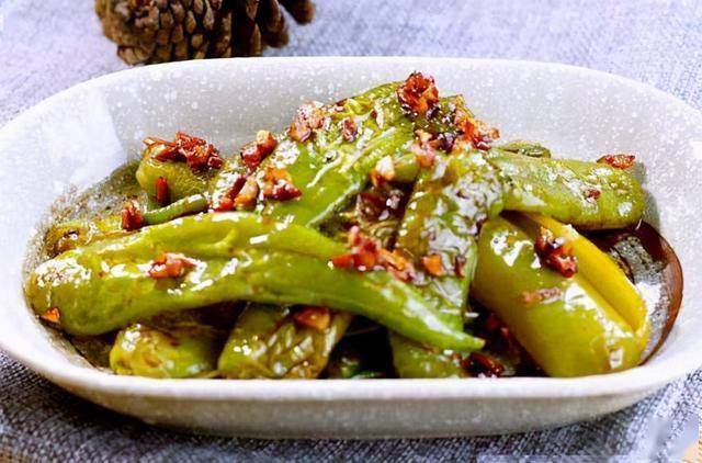 食材:300g青椒、适量蒜蓉、100ml食油、1勺生抽、1勺甜米酒1元 食盐