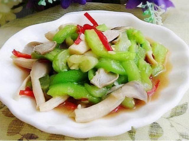 4.【小火】鸡肉炒熟后,加入丝瓜、牛排菇片、胡萝卜片