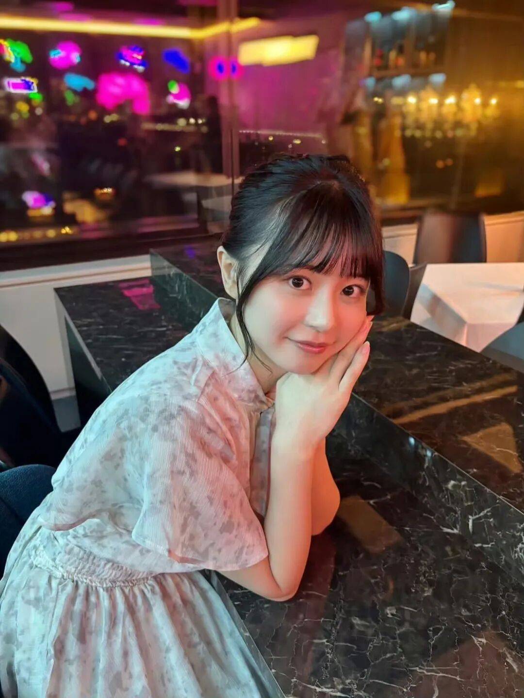 外在形象:逆天颜值,生图惊艳,发际线弧度、鼻梁高度、酒窝位置完美,像二次元走进现实。165cm 身高,穿搭品味好,会利用高腰线设计拉长比例。