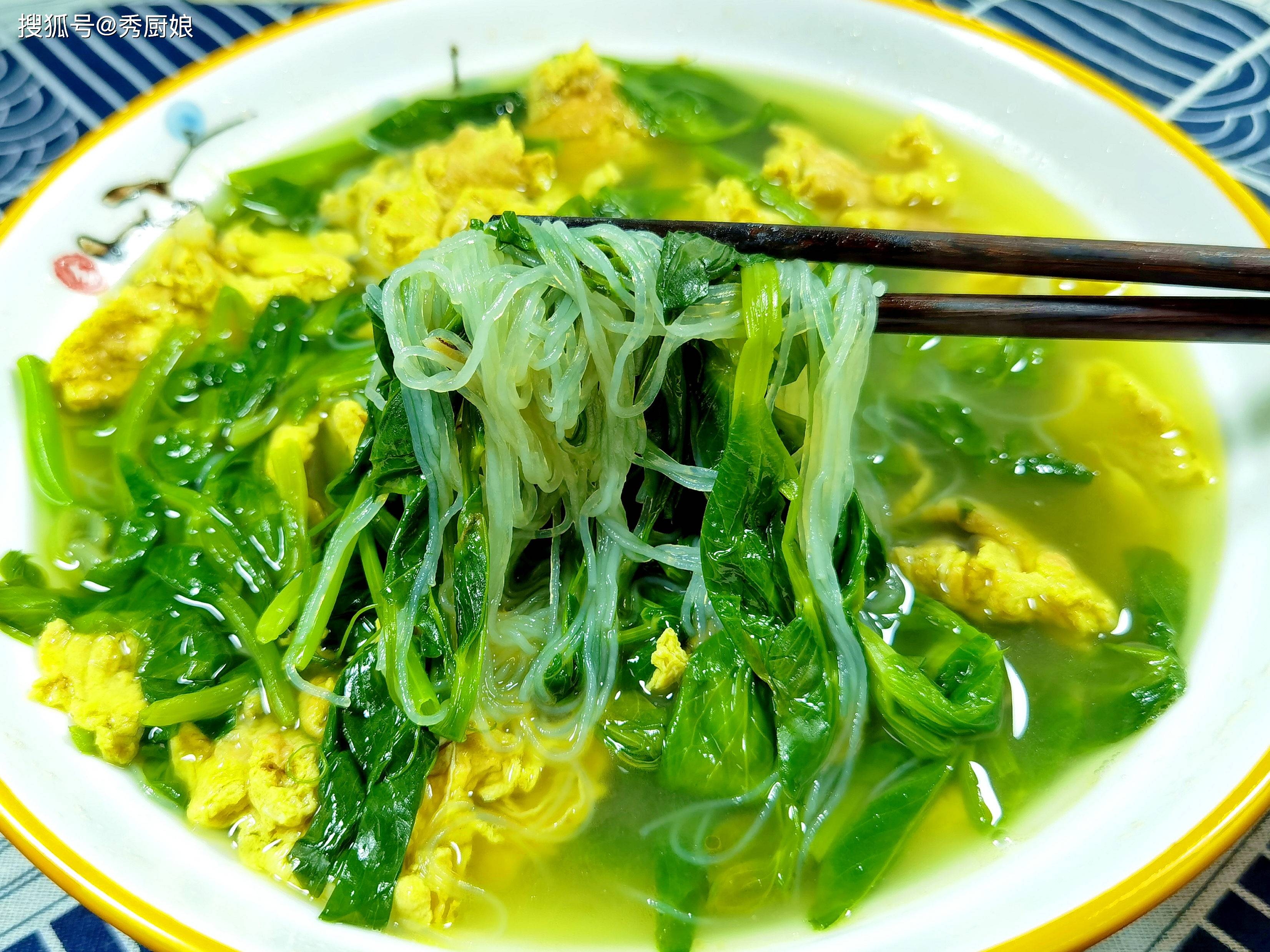 推荐食谱:豌豆尖粉丝虾皮鸡蛋汤