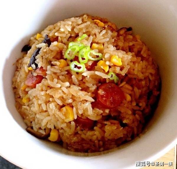 5.按电饭煲“煮饭”键,煮好后焖10分钟,开盖翻拌均匀即可。