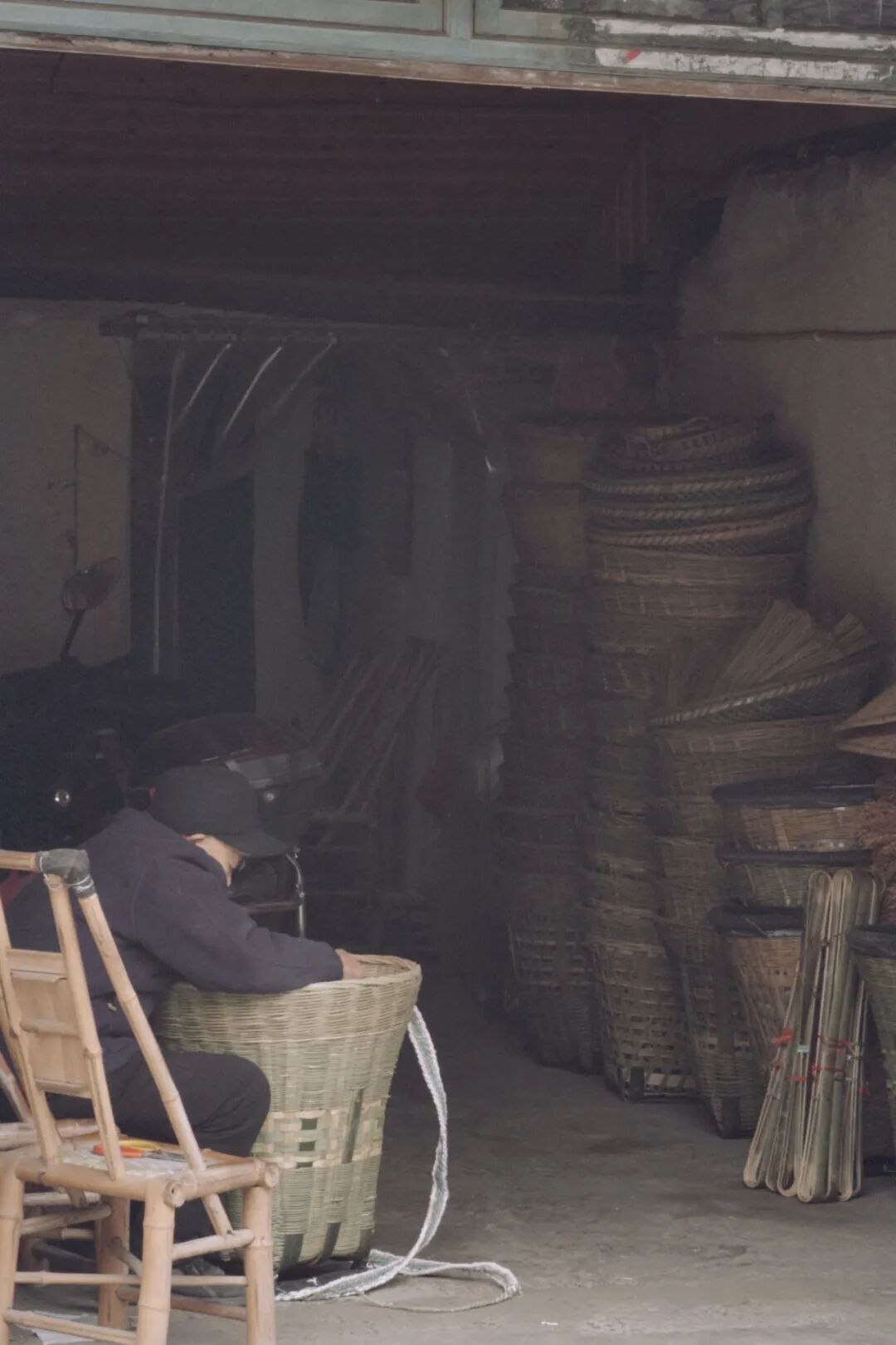 街道边小小的作坊里,老人佝偻着坐在竹篾前指尖翻飞,不一会儿就编出一个精巧的背篓,脸上满是岁月静好的模样。