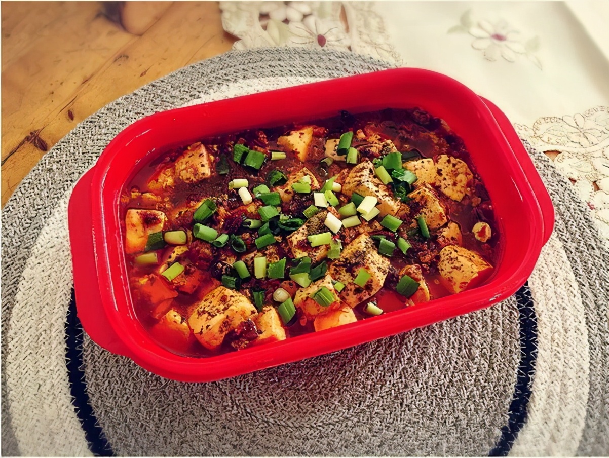 材料: 豆腐、肉馅、郫县豆瓣酱、花椒、辣椒、豆豉、青蒜、葱末、姜末、高汤、酱油、糖、胡椒粉; 做法 1.豆腐切块,怕豆腐碎可以先焯水(水中加盐大火煮3分钟);锅中放油,小火炒香郫县豆瓣酱,炒出红油; 2.放豆豉,葱末,姜末。下肉馅(猪肉,牛肉都可以),炒,放入高汤(可用清水代替,要开水),烧开后,下豆腐,放入酱油,糖,胡椒粉,小火煮5分钟,使豆腐入味,大火收汁,水淀粉勾芡; 3.放入青蒜,撒上辣椒粉,花椒粉即可; 虾仁丸子汤面