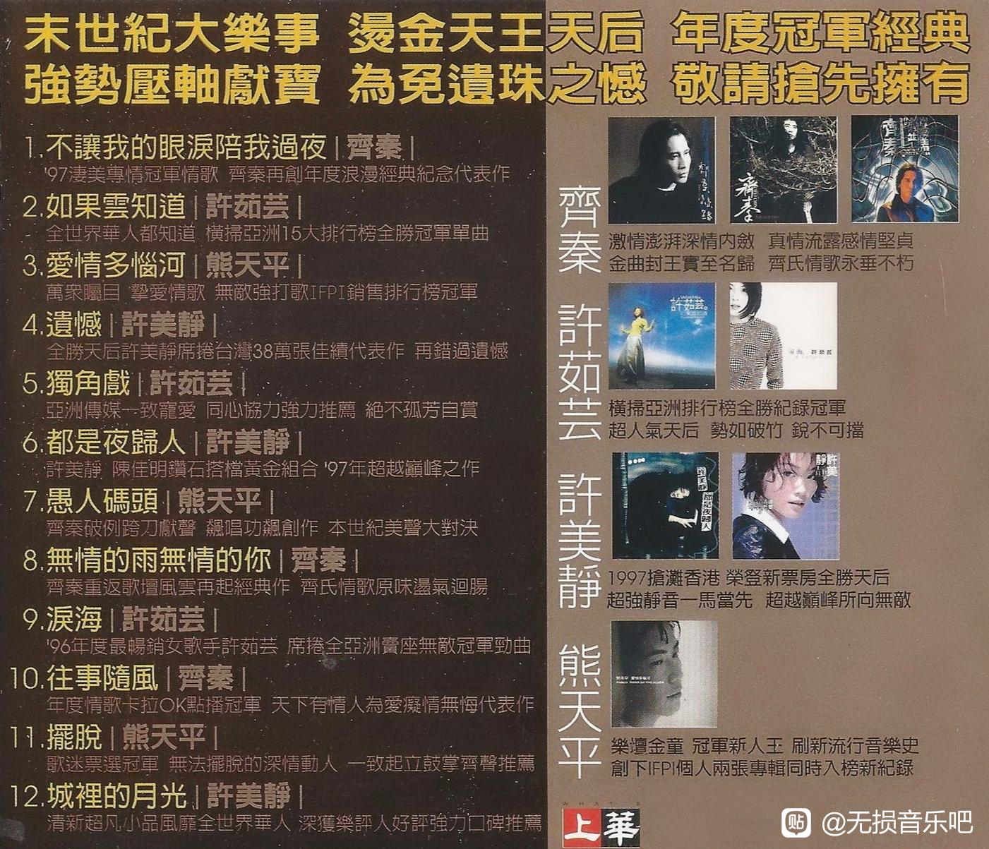 群星《二王二后超级精选》WAV+CUE 简评 一、专辑概述 《二王二后超级精选》是一张汇集了众多优秀歌手的精选专辑。这张专辑以其高质量的WAV格式和精确的CUE分轨,为音乐爱好者提供了极致的听觉享受。专辑中的歌曲涵盖了多种音乐风格,包括流行、摇滚、民谣等,展现了华语音乐的多样性和丰富性。 二、音乐风格与曲目推荐 2.1 流行金曲 专辑中收录了一些经典的流行金曲,如蔡依林的《舞娘》、周杰伦的《青花瓷》等。这些歌曲以其优美的旋律和深情的歌词,成为了华语乐坛的经典之作。 2.2 摇滚力量 对于喜欢摇滚音乐的听众,专辑中也收录了崔健的《一无所有》、窦唯的《高级动物》等经典摇滚歌曲。这些歌曲以其强烈的节奏和激昂的演唱,展现了摇滚乐的独特魅力。 2.3 民谣情怀 专辑中还收录了一些深情的民谣歌曲,如赵雷的《成都》、朴树的《平凡之路》等。这些歌曲以其简洁的旋律和真挚的歌词,触动了人们内心最柔软的部分。 三、音质与制作 3.1 WAV格式的优势 WAV格式是一种无损音频格式,能够提供非常高的音质。这张专辑采用WAV格式,使得每首歌曲的音质都非常出色,无论是高音的清澈度还是低音的厚重感,都表现得淋漓尽致。 3.2 CUE分轨的精确性 CUE分轨是一种将整张专辑的音乐内容分割成多个独立曲目的技术。这张专辑的CUE分轨非常精确,每首歌曲的起始和结束都处理得恰到好处,使得听众可以方便地找到自己喜欢的歌曲。 四、总结 《二王二后超级精选》是一张不可多得的音乐专辑,它汇集了华语乐坛的众多经典之作,无论是在音乐风格上还是在音质制作上,都达到了极高的水准。对于喜欢华语音乐的听众来说,这张专辑绝对值得一听。