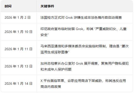 从 本月初开始,Grok便开始被全球各国启动调查,法国、印尼、马来西亚等,就连美国加州也开始对其展开调查。