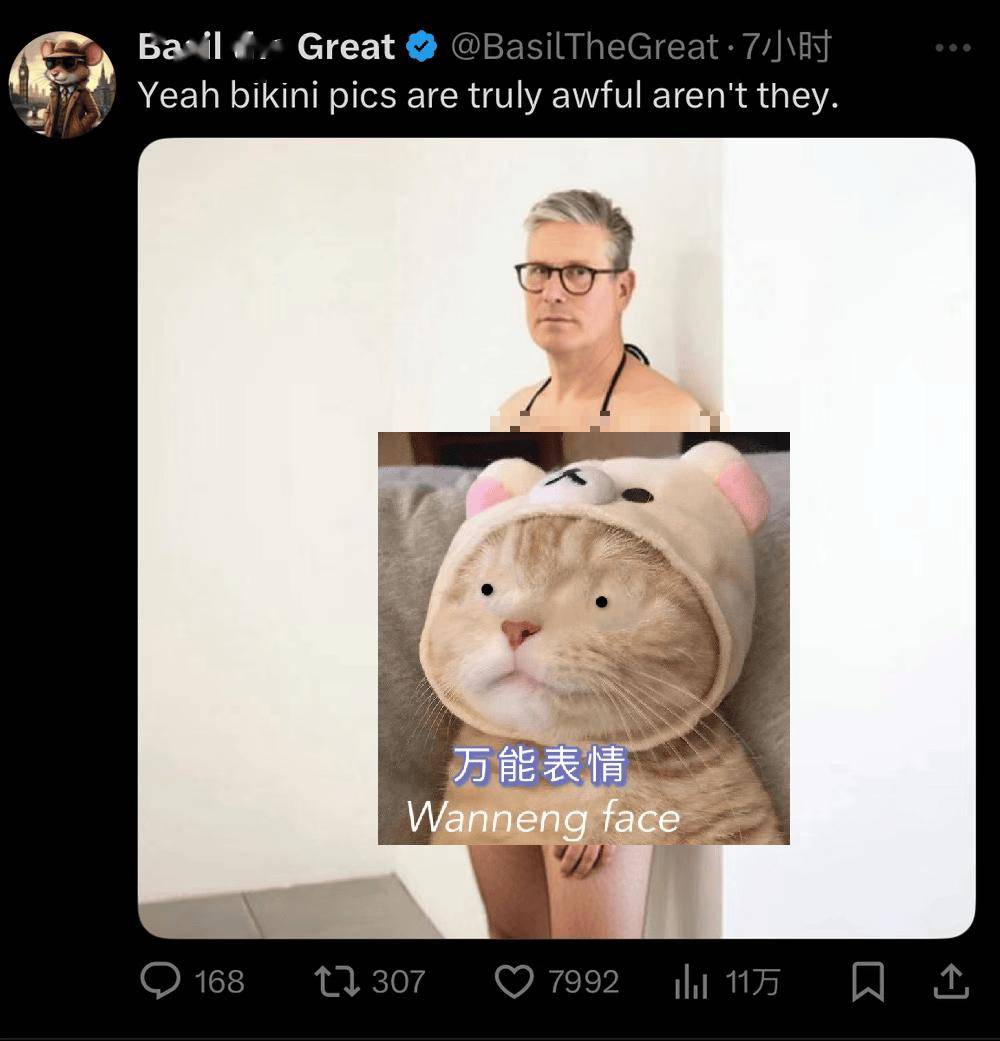 甚至,英国首相 基尔・斯塔默 也遭到网友一键变装的“迫害”。