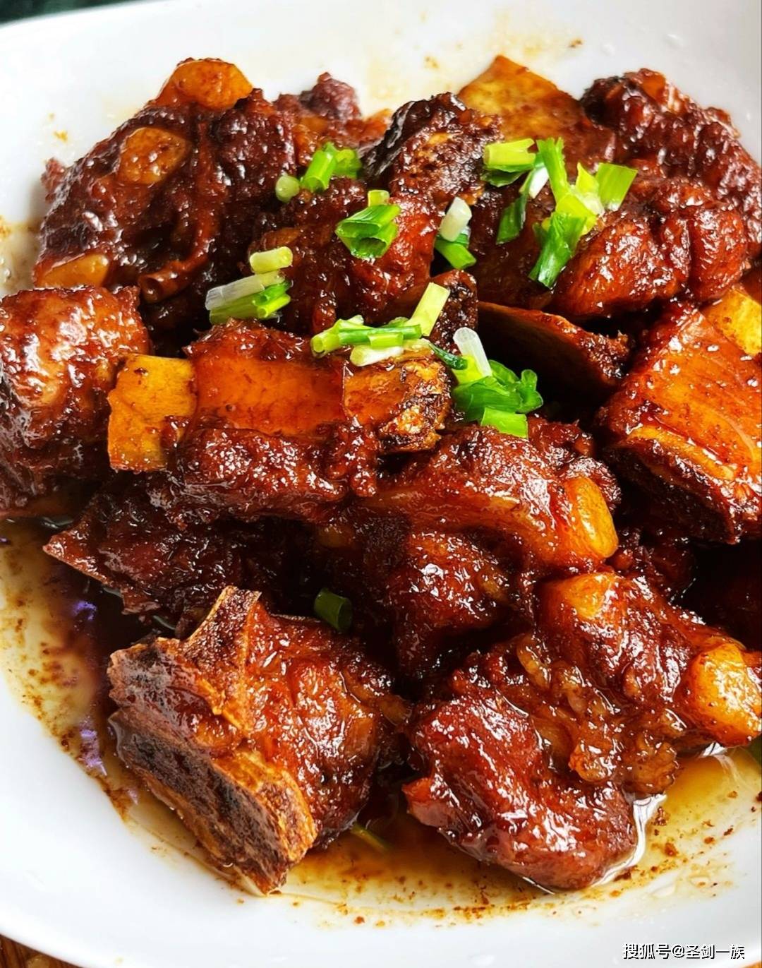 准备:排骨500克、老抽1勺、生抽1勺、白糖2勺、生姜几片、八角2个、料酒1勺、香葱、水、白胡椒粉少许。 做法步骤: 1. 排骨洗净,和几片姜一起下冷水锅,煮开后捞出,用温水冲干净。 2. 锅烧热,放白糖,开小火慢慢熬,等到糖融化变成枣红色,赶紧把排骨倒进去快速翻炒上色。 3. 放入姜片和八角炒香,再加生抽、老抽,炒匀。 4. 加入足量的开水,要没过排骨。大火烧开后转小火,盖上盖子慢慢炖1个小时左右,炖到排骨软烂。 5. 最后尝尝味道,根据需要加点盐和胡椒粉,开大火把汤汁收浓一点,撒上葱花就好了。 五、香辣干锅牛蛙